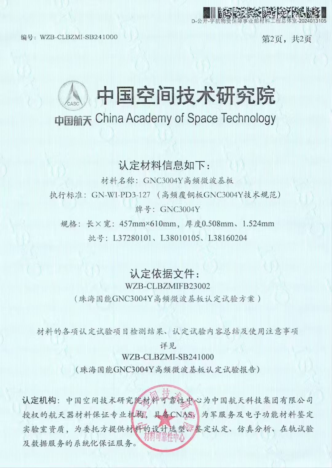 GNC3004Y板材成功通過中國空間技術研究院材料可靠性中心的權威認證(150M rad(Si)劑量)。為深空探測、核技術應用等國家重點工程提供關鍵材料支撐,是我們的使命,也是我們的初心!珠海國能新材料股份有限公司